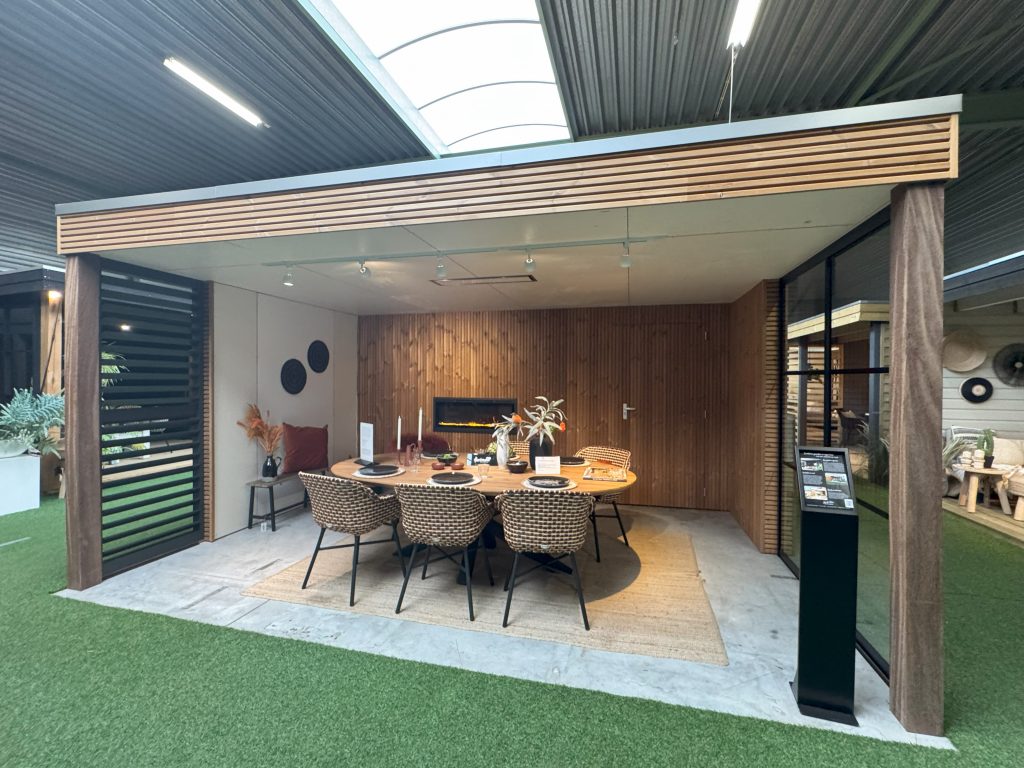 In onze showroom in Wijchen staat dit showmodel te koop. De afmeting is 5.00 (breed) x 3.00 (diep) meter.
